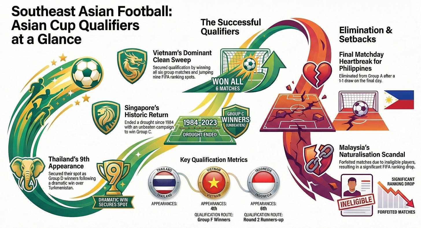 With four representatives at the 2027 Asian Cup, regional rivals Thailand and Vietnam both in the FIFA top 100, and Singapore ending a 43-year drought, the balance of power is shifting.