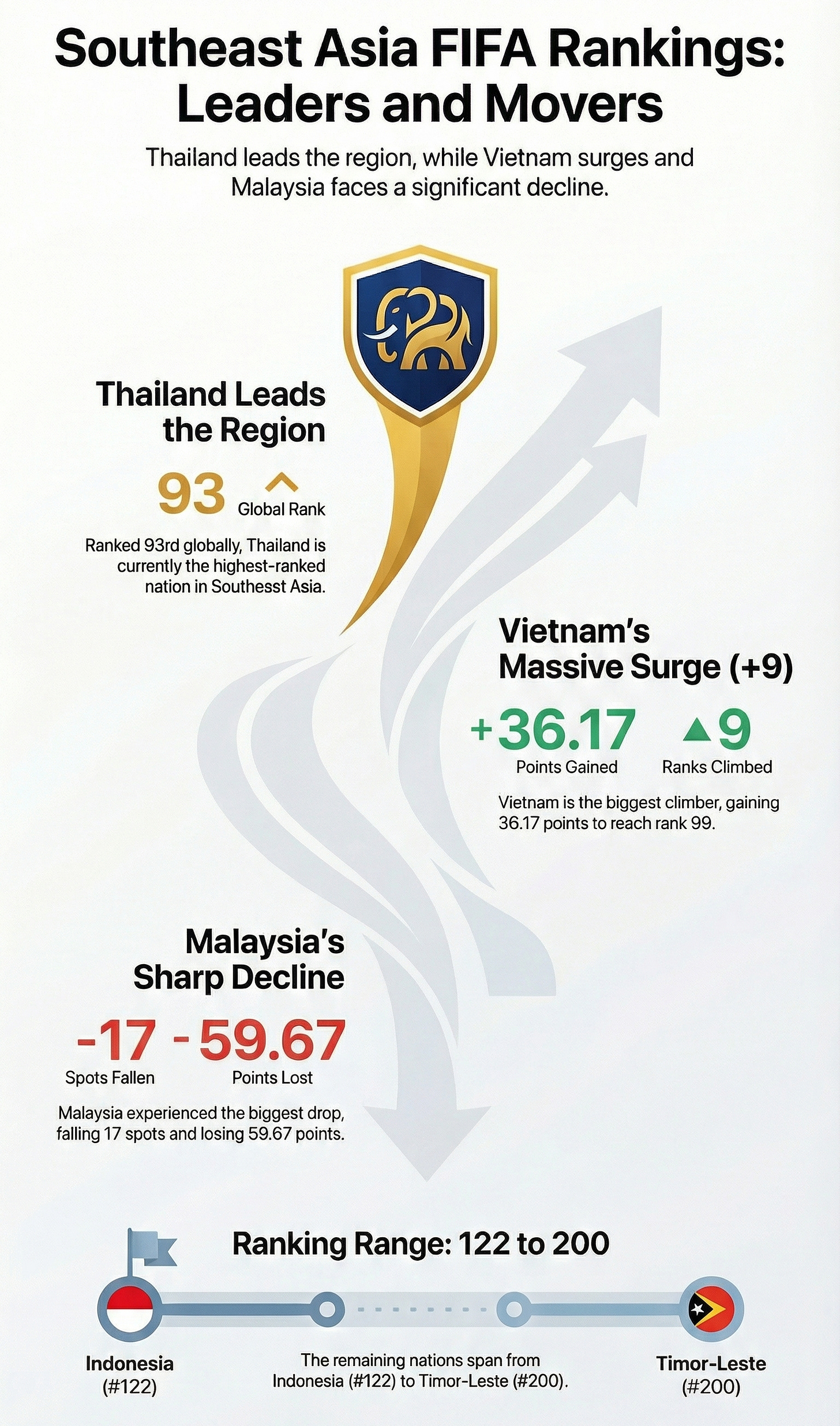 For Southeast Asia, the results reflect tangible progress: Vietnam and Thailand now both sit in the FIFA top 100 for the first time since 2004, while Singapore’s achievement ends a 43-year absence from the continent’s premier tournament.